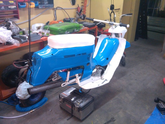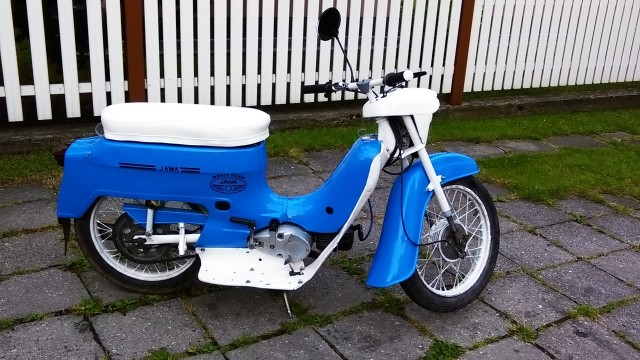 Jawa 50 Typ 20Jawka została polakierowana proszkowo oraz jej silnik jest po gruntownym remoncie,a kanapa jawki została uszyta na zamówienie.
